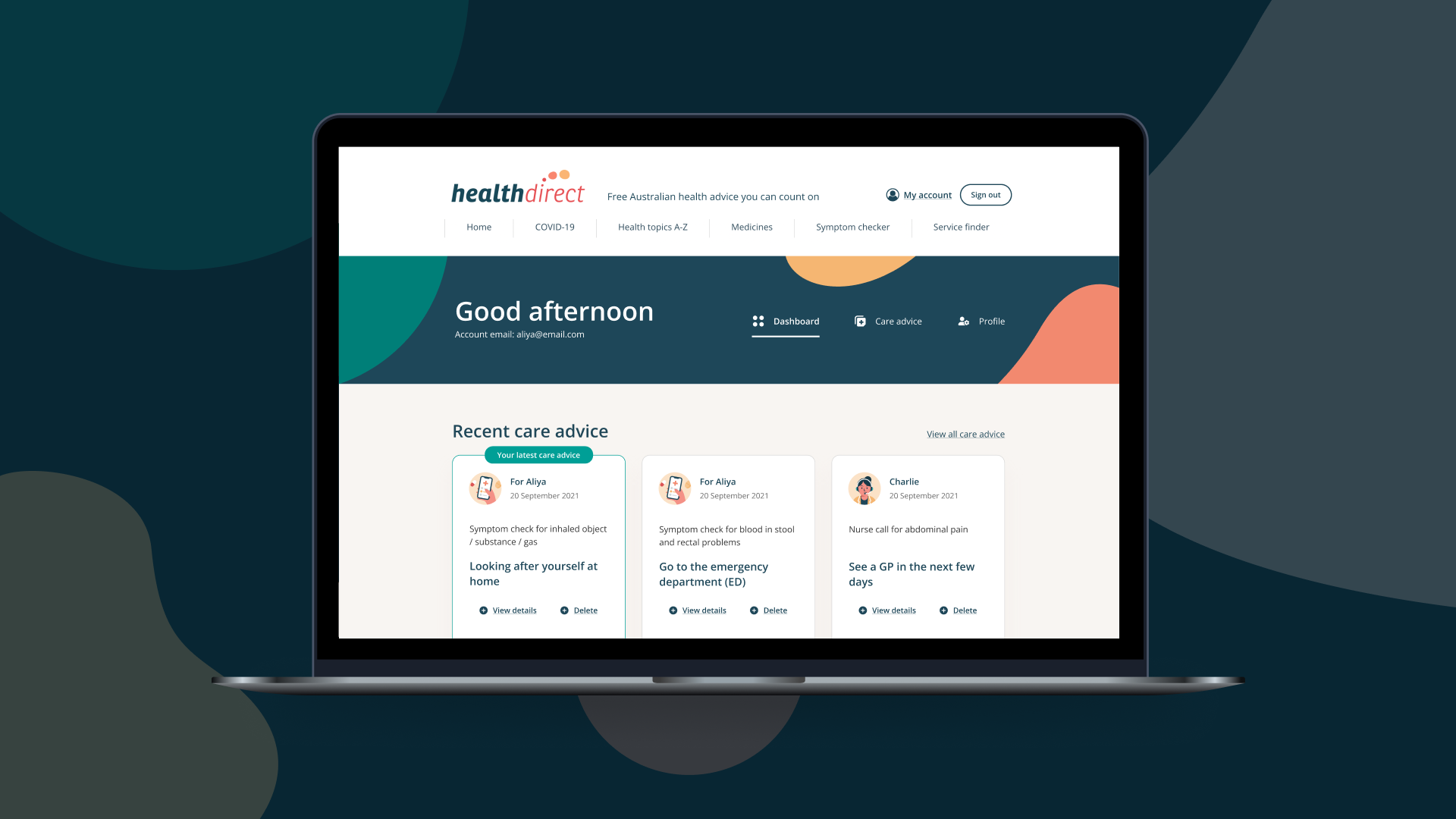 Healthdirect was embarking on the first phase of enabling continuity of care across their platform. Allowing users to create a secure account to save their symptom checks, health fact sheets and build up a personalised health profile.